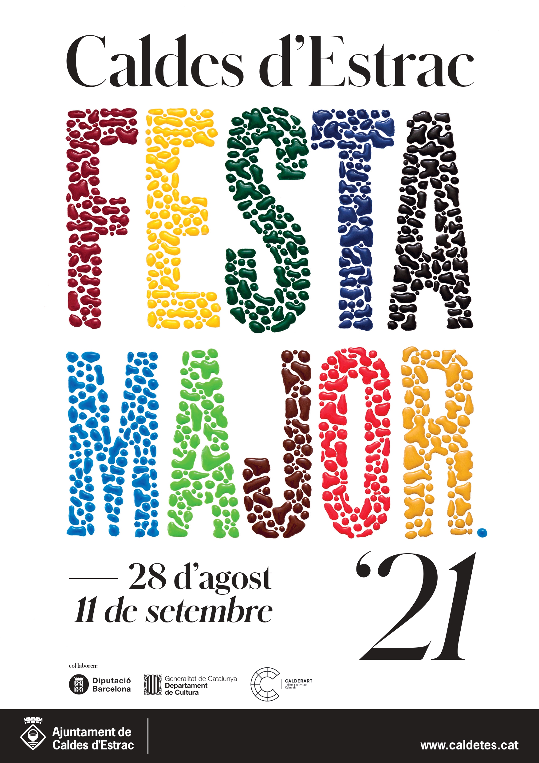 Amb tot això, el regidor de cultura també ha volgut fer esmena al disseny del cartell d’aquesta edició. Un cartell que s’inspira en els 800 anys d’història, que va complir el municipi l’any passat, i que fa un homenatge a l’aigua. Recordem, un element molt present en la història del poble i la vida dels caldencs i caldenques. Amb aquests dos elements, els dissenyadors han creat un cartell amb 801 gotes d’aigua que acaben conformant les paraules ‘Festa Major’.